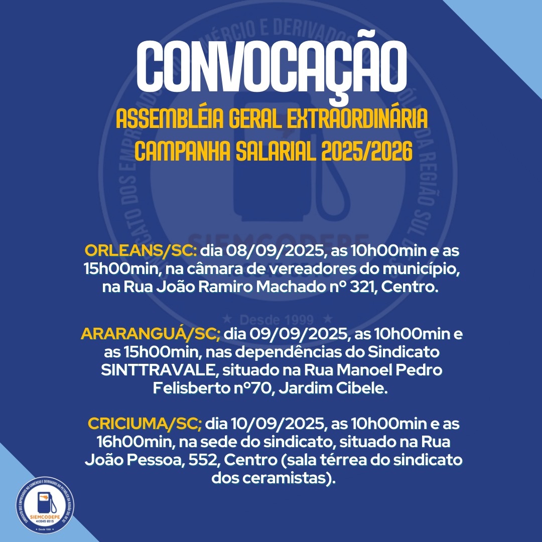 O Sindicato dos Trabalhadores dá início ao processo de Negociações Coletivas de Trabalho 2025/2026, momento fundamental para a construção das conquistas da categoria. É nessa etapa que serão discutidas e definidas as principais reivindicações que irão compor a pauta a ser apresentada ao patronal.