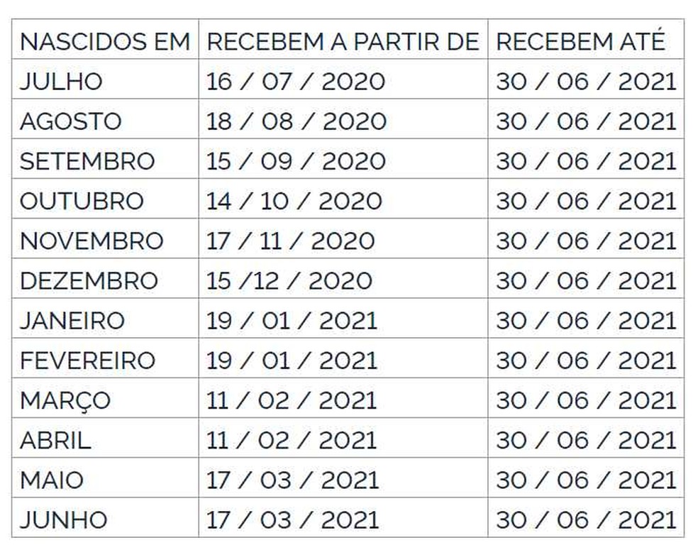 O calendário de saques se estenderá até 30 de junho de 2021. No caso do PIS (trabalhadores do setor privado), os pagamentos são feitos de acordo com o mês de nascimento do trabalhador.